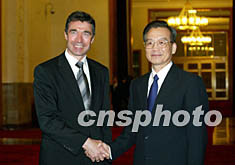 圖:溫家寶會(huì)見(jiàn)丹麥?zhǔn)紫嗬鼓律?/b>