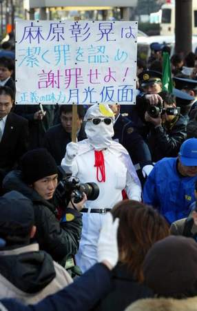 在麻原被指控的一系列犯罪事件中,最為駭人聽聞的便是發(fā)生在一九九五年三月的東京地鐵沙林毒劑事件,在地鐵霞關站內車廂散布的沙林毒劑,共造成十二人死亡,五千五百多人受到不同傷害。事發(fā)后不久,日本警方對奧姆教團設在富士山腳下的大本營據(jù)點進行全面搜查,并先后逮捕了該教教主麻原彰晃和眾多涉嫌骨干人員。在此后進行的長達八年多的刑事訴訟中,共完成對一百八十九名奧姆教團涉案者的一審審判,包括麻原在內的十二人被判處極刑。