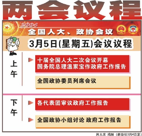 圖表:全國(guó)人大、政協(xié)3月5日(星期五)會(huì)議議程
