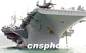 圖文:美國(guó)航空母艦“小鷹”號(hào)6日清晨抵達(dá)香港