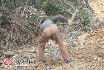 這一情況被反饋給負責管轄這一帶的南寧市興寧公安分局腰塘派出所。干警隨即前往現(xiàn)場查看,從外觀上看,深埋雞爪的地方的確有翻挖過的痕跡,而且原來在附近的兩個大土包不見了。由于地下深埋的東西涉嫌疫情,派出所在安排人員看守現(xiàn)場后,將情況反映給檢驗檢疫部門。