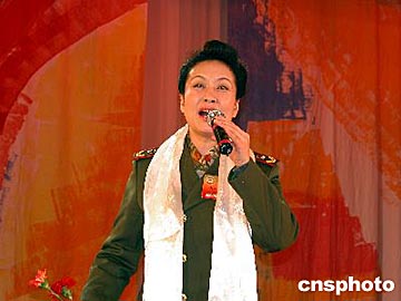 2004年3月9日晚,全國政協(xié)十屆二次會(huì)議中共、僑聯(lián)、宗教、民族屆委員與友誼賓館員工舉行聯(lián)歡會(huì)。圖為歌唱家彭麗媛在演唱。 孫洪杰 攝