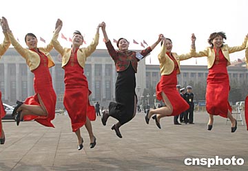 來自新疆的“高空王子”阿迪力表示,他要馬上坐飛機回去,為民間高空走繩藝術(shù)——“達瓦孜”籌辦一個學(xué)校,培養(yǎng)接班人。談及這次盛會,這位人大代表連說了三個高興——為“私產(chǎn)入憲”而高興;為親民、愛民、護民的領(lǐng)導(dǎo)集體而高興,為新的奮斗目標而高興;接著又連說了三個好——好班子、好目標、好盼頭!