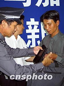 他介紹說(shuō)自從公安部三月二日發(fā)布有關(guān)馬加爵的通緝令后,他始終留意這個(gè)信息。三月十五日晚七時(shí)左右他騎摩托車(chē)經(jīng)過(guò)三亞河西岸,前往第一市場(chǎng)買(mǎi)菜。發(fā)現(xiàn)路邊有一男子在路邊垃圾桶翻撿別人丟棄的食物和飲料,他覺(jué)得此人相貌與通緝令上的照片非常想像,他立刻與到處都粘貼的通緝令對(duì)照,認(rèn)為比較確定。在與馬犯對(duì)視的過(guò)程中,他還發(fā)現(xiàn)此人在裝瘋并且走路一瘸一拐。他立刻騎摩托前往三亞河西派出所報(bào)案。