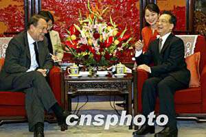 中新社北京三月十六日電 (記者 朱大強)中國總理溫家寶今天在此間會見了到訪的歐盟理事會秘書長兼歐盟共同外交與安全政策高級代表索拉納。
