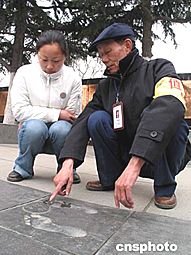 侵華日軍南京大屠殺遇難同胞紀(jì)念館自三月一日免費(fèi)開放以來(lái),接待人數(shù)超過(guò)了去年同期十倍。七十一歲的南京大屠殺幸存者佘子清自愿到紀(jì)念館當(dāng)義工。三月二十四日,佘子清向游人講解自己被拓印在銅版路上的腳印,控訴日軍暴行。作者:丁東升