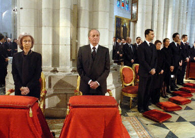 西班牙國王卡洛斯和包括法國總統(tǒng)希拉克、英國首相布萊爾、德國總理施羅德、美國國務卿鮑威爾等在內的多國領導人出席了葬禮。