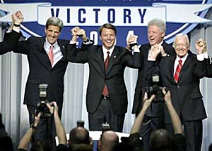 克里已獲得了他初選最強(qiáng)有力競(jìng)爭(zhēng)者前佛蒙特州長迪安的支持。其它在初選與克里競(jìng)選的候選人如克拉克將軍、前北加利福尼亞愛德華茲參議員都已向支持者發(fā)去電子郵件,請(qǐng)求他們向克里的競(jìng)選活動(dòng)捐款。