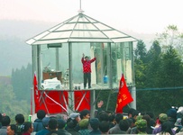 3月19日,來自瀘州的50歲個體醫(yī)生陳建民,在碧峰峽進入懸空隔絕的玻璃表演房,表演絕食49天,以挑戰(zhàn)美國魔術師去年創(chuàng)下的44天絕食極限,沖擊“世界第一餓”。