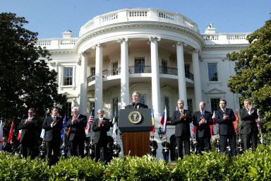 29日,美國總統(tǒng)布什在白宮對(duì)加入“北約”的7國表示了歡迎談話。北約將于4月2日在布魯塞爾總部舉行典禮,慶祝北約東擴(kuò)。但事實(shí)上從29日起,該7國已開始被正式視為“北約”成員。“北約”成員國已增加到26國。