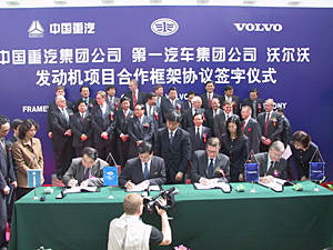 根據(jù)達(dá)成的合作框架協(xié)議,合作三方將在中國共同投資生產(chǎn)沃爾沃柴油發(fā)動(dòng)機(jī),合資公司將在中國重汽集團(tuán)的所在地山東省城濟(jì)南注冊(cè)。據(jù)悉,這是沃爾沃集團(tuán)第一次在瑞典本土以外成批制造生產(chǎn)最新產(chǎn)品。