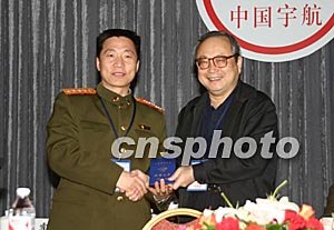 中國“航天英雄”楊利偉三月三十日被授予中國宇航學(xué)會榮譽會員。中國宇航學(xué)會理事長劉紀原向楊利偉頒發(fā)證書。作者:周武