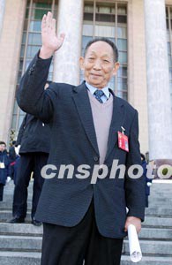 瘦小的身子,高高的顴骨,背微駝,小平頭,古銅色的臉龐爬上了些許老人斑,歲月霜刀刻在寬闊的額頭上,這就是記者第一眼看到的中國水稻專家袁隆平。