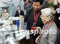 已故中共中央總書記胡耀邦的夫人李昭,四月五日來到北京國(guó)際展覽中心,觀看于當(dāng)日開始的中國(guó)國(guó)際服裝服飾博覽會(huì)女裝展。中新社記者:毛建軍
