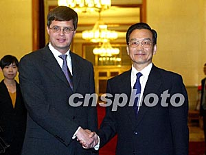 溫家寶說,中荷關系發(fā)展有許多有利條件,不存在任何政治障礙。