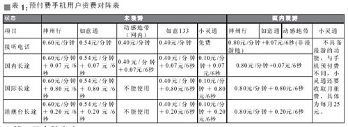 預付費用戶分未漫游(在北京市內(nèi)使用)和漫游(在國內(nèi)其他地區(qū)使用)兩類收費標準。具體資費標準見表1。