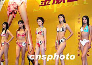 由廣東電視臺和法國時尚電視臺主辦的《金威2004國際超模大賽》,將于十日在廣州舉行選拔賽。八日,來自華南、華中、華北等七個賽區(qū)的四十八位參賽佳麗出席了在廣州舉行的媒體見面會。作者:劉衛(wèi)勇