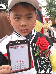 四月十日,南京火瓦巷小學生洪旻揚與其他百名志愿者在南京大屠殺遇難同胞紀念館宣誓上崗,成為這里的一百一十八志愿者之一。南京大屠殺遇難同胞紀念館自三月一日免費開放以來,接待人數(shù)比去年同期增加十倍,因此不得不向社會招募志愿者。作者:丁東升