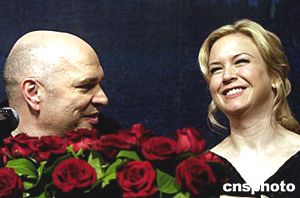 四月十二日下午,剛剛獲得奧斯卡最佳女配角的美國著名影星蕾尼·齊薇格攜影片《冷山》來華。該影片將于四月三十日在中國上映。圖為蕾尼·齊薇格(右)與影片導演、英國著名導演安東尼·明格拉(左)在媒體見面會現(xiàn)場。作者:高遠