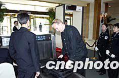 四月十三日上午,美國副總統(tǒng)切尼訪華將下榻的北京國際俱樂部飯店開始對進(jìn)入人員實施安檢,以確保安全。中新社記者:毛建軍