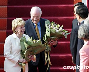 切尼此訪本應(yīng)在去年春天進(jìn)行,后因伊拉克戰(zhàn)爭(zhēng)延遲到今年春天。這是切尼就任美國(guó)副總統(tǒng)以來(lái)第三次出國(guó)訪問(wèn),也是切尼第四次訪問(wèn)中國(guó),美方官員表示,切尼本人高度重視此次訪問(wèn)。