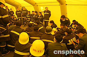 今天下午,重慶市對天原化工總廠殘存有液態(tài)氯的三個貯氣罐進行了人工引爆,三個貯氣罐目前已被摧毀,險情被排除。十五日晚重慶天原化工總廠發(fā)生氯氣泄漏爆炸事件,十五萬群眾被疏散。圖為消防官兵在洗消帳篷內布署工作。作者:鄒輝