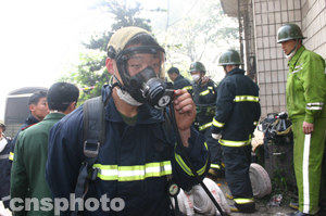 今天下午,重慶市對天原化工總廠殘存有液態(tài)氯的三個貯氣罐進行了人工引爆,三個貯氣罐目前已被摧毀,險情被排除。十五日晚重慶天原化工總廠發(fā)生氯氣泄漏爆炸事件,十五萬群眾被疏散。圖為進入事故現場的消防員全副武裝。作者:鄒輝