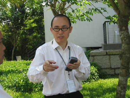 在博鰲投建有“藍(lán)色海岸”別墅區(qū)的北京紅石實業(yè)有限責(zé)任公司總經(jīng)理潘石屹,走進博鰲亞洲論壇2004年年會記者村時表示,有一種“回家的感覺”。(春風(fēng))