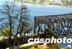 四月二十四日周末假日,陽光照耀著與朝鮮一江之隔的遼寧省丹東市中朝口岸。朝鮮二十二日發(fā)生火車爆炸重大事故后,該口岸秩序通行正常。中新社記者:宋吉河