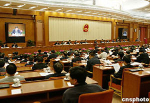中新網(wǎng)4月25日電 十屆全國人大常委會第九次會議25日在北京舉行,吳邦國委員長出席并主持了上午的第一次全體會議。
