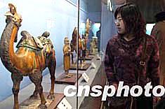 為了弘揚鄭振鐸先生(1898—1958)的學術(shù)思想,北京故宮博物館從鄭振鐸先生捐獻給故宮博物院上至兩漢,下至宋代,總計六百余件的陶俑中遴選出一百三十六件舉辦《鄭振鐸捐獻陶俑特展》。圖中展示的是國家一級文物陶俑《唐三彩駱駝》,該展覽將于四月二十八日正式舉行。中新社記者:張勤