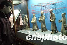 北京故宮博物院四月二十八日舉辦《鄭振鐸捐獻陶俑特展》。主辦方遴選出鄭振鐸捐獻給故宮博物院的六百余件陶俑中的一百三十六件參加展覽。圖為西漢灰陶女立俑。中新社記者:張勤