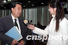 中國教育部四月二十八日舉行新聞發(fā)布會,教育部國際合作與交流司司長曹國興介紹說,到目前為止,全國經(jīng)過認(rèn)定的自費留學(xué)機構(gòu)一共是270家,自費留學(xué)中介活動已經(jīng)逐步走上規(guī)范運行的軌道。圖為曹國興接受媒體記者采訪。中新社記者:張勤