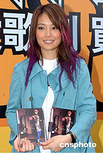 歌星容祖兒4月28日在香港商業(yè)電臺(tái)出席《id音樂(lè)維新》記者會(huì),手持其個(gè)人音樂(lè)專輯,呼吁大家支持正版音樂(lè)。作者:鄧慶樂(lè)