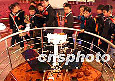 四月三十日,北京小學(xué)生正在中國(guó)科技館觀看由美國(guó)國(guó)家航空航天局(NASA)提供的“機(jī)遇號(hào)”火星車(chē)二分之一模型。這是“機(jī)遇號(hào)”火星車(chē)二分之一模型首次在中國(guó)公開(kāi)展出。該模型由NASA制作,全世界僅有兩個(gè)。該模型與火星車(chē)實(shí)物在制作材料相同,但個(gè)頭較小,它也沒(méi)有全身武裝的科學(xué)探測(cè)儀器。中新社記者:張煒