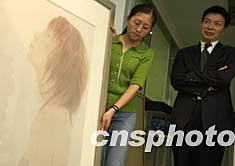 北京華辰拍賣有限公司董事長兼總經(jīng)理甘學軍(右一),將在五月春季拍賣中推出一批中國當代年青藝術家的精品,這批新生代的佳作與當今世界藝術潮流齊頭并進,極具收藏欣賞和升值價值。中新社記者:賈國榮