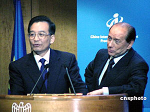“對(duì)于我們會(huì)談的情況,貝魯斯科尼總理已經(jīng)做了全面的介紹,我只做幾點(diǎn)補(bǔ)充:第一,我們將簽署中、意兩國(guó)聯(lián)合聲明,這是中國(guó)和意大利建交后簽署的第一份政府間的聲明;第二,為了促進(jìn)中、意兩國(guó)的友好合作關(guān)系,我們決定建立中意政府委員會(huì)。中國(guó)和外國(guó)建立這樣高層次的協(xié)調(diào)機(jī)構(gòu),也是第一次!睖乜偫碓谙蛴浾弑硎疚繂(wèn)后告訴大家說(shuō)。