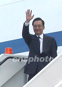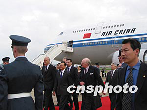 中新社倫敦五月九日電 (記者 朱大強)當?shù)貢r間今天上午十時五十分,中國國務院總理溫家寶乘專機抵達倫敦希思羅機場,開始對英國進行為期三天的正式訪問。