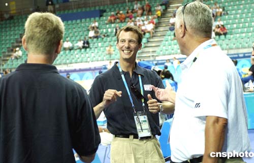 圖為丹麥王子弗雷德里克親自到奧運賽場觀看希臘隊的比賽。