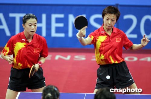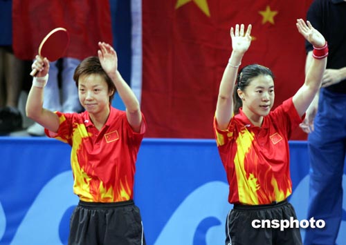 當(dāng)?shù)貢r間8月20日下午,中國乒乓球選手王楠、張怡寧在決賽中以4比0輕取韓國選手,獲得本屆奧運會女子雙打冠軍。中新社記者:任晨鳴