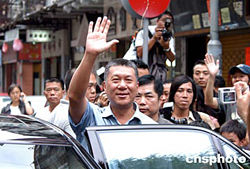 何厚鏵向市民揮手致意