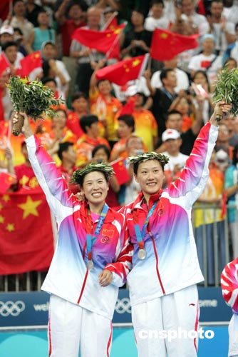 “黃穗抽筋了,我也該到修理廠大修了!备崚笑著和混雙搭檔張軍說道,張軍讓她多喝點水休息一下,“我喝了,可是不管用,還是累。 备崚/黃穗今日下午在雅典奧運會羽球女雙決賽中一比二不敵隊友楊維/張潔雯獲得銀牌,體力嚴重透支是高崚/黃穗失利的主要原因之一。