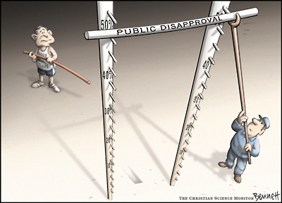 中新網(wǎng)8月22日電 911事件后,美國總統(tǒng)布什的民眾支持率曾達(dá)到歷史頂點。但時至今日,布什的民眾不支持率卻是節(jié)節(jié)攀升。分析人士指出,如果民眾的不支持率超過50%,這對于希望蟬聯(lián)總統(tǒng)職位的布什來說,將是一種難以逾越的危機。(來源:基督教科學(xué)箴言報)