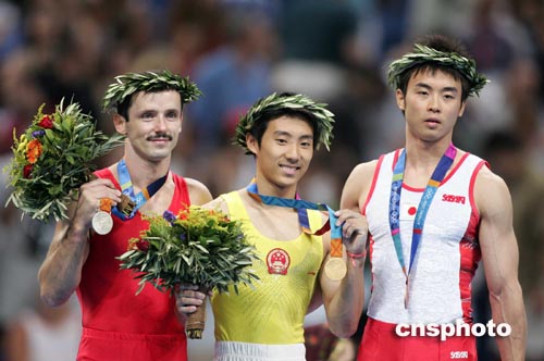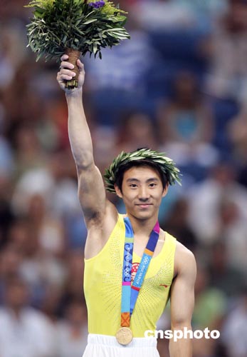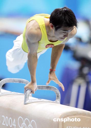 中新社雅典八月二十二日電 (記者 宋方燦)雅典奧運會體操鞍馬比賽今天晚上進行,中國兩名選手參加了比賽。滕海濱在比賽中發(fā)揮出自己的水平,以九點八三七分摘取金牌。