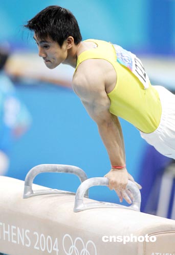 中新社雅典八月二十二日電 (記者宋方燦)在今天晚上進(jìn)行的雅典奧運(yùn)會(huì)體操鞍馬比賽中,小將滕海濱不負(fù)眾望,奪取了中國(guó)體操隊(duì)在本屆比賽中的第一枚金牌。不過,他在賽后表示“功不抵過”。