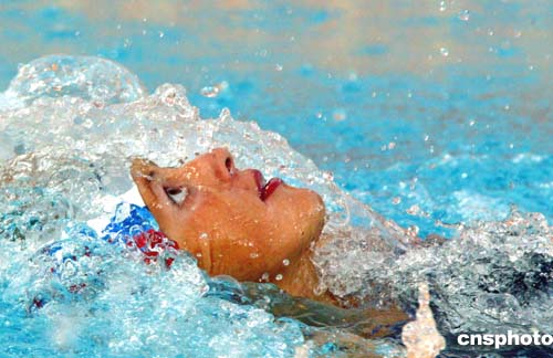 在當地時間8月20日進行的女子200米仰泳比賽中,俄羅斯選手Stanislava Komarova獲得銀牌。圖為她在比賽中的表現。
