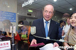 八月二十三日,上海公安局出入境管理局根據《外國人在中國永久居留審批管理辦法》,開始正式受理駐滬外國人在中國永久居留的申請。圖為西門子(中國)有限公司執(zhí)行副總裁博格在提交申請表。作者:湯彥俊