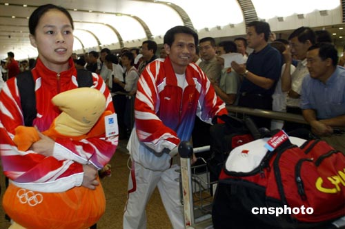 8月23日,在雅典奧運(yùn)會(huì)體操女子蹦床決賽中獲得銅牌的中國(guó)小將黃珊汕,載譽(yù)抵達(dá)北京首都國(guó)際機(jī)場(chǎng)。蹦床項(xiàng)目在中國(guó)開展很晚,直到今年才首次獲得參加奧運(yùn)資格,但黃珊汕的實(shí)力有目共睹,她曾在今年的雅典測(cè)試賽中力挫群芳奪得女子蹦床冠軍。中新社記者:盛佳鵬
