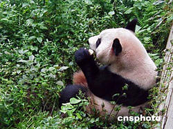 二00四年六月下旬從日本回到故鄉(xiāng)的大熊貓“彬彬”經(jīng)過兩個月的檢疫后,于八月二十三日在成都大熊貓繁育研究基地離開檢疫館住進它的仿生獸舍,開始與游人見面。作者:魯彥