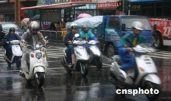 中度臺風“艾利”來勢洶洶,臺氣象部門23日發(fā)布陸上臺風警報。圖為臺北街頭雨紛紛。中新社記者:董會峰